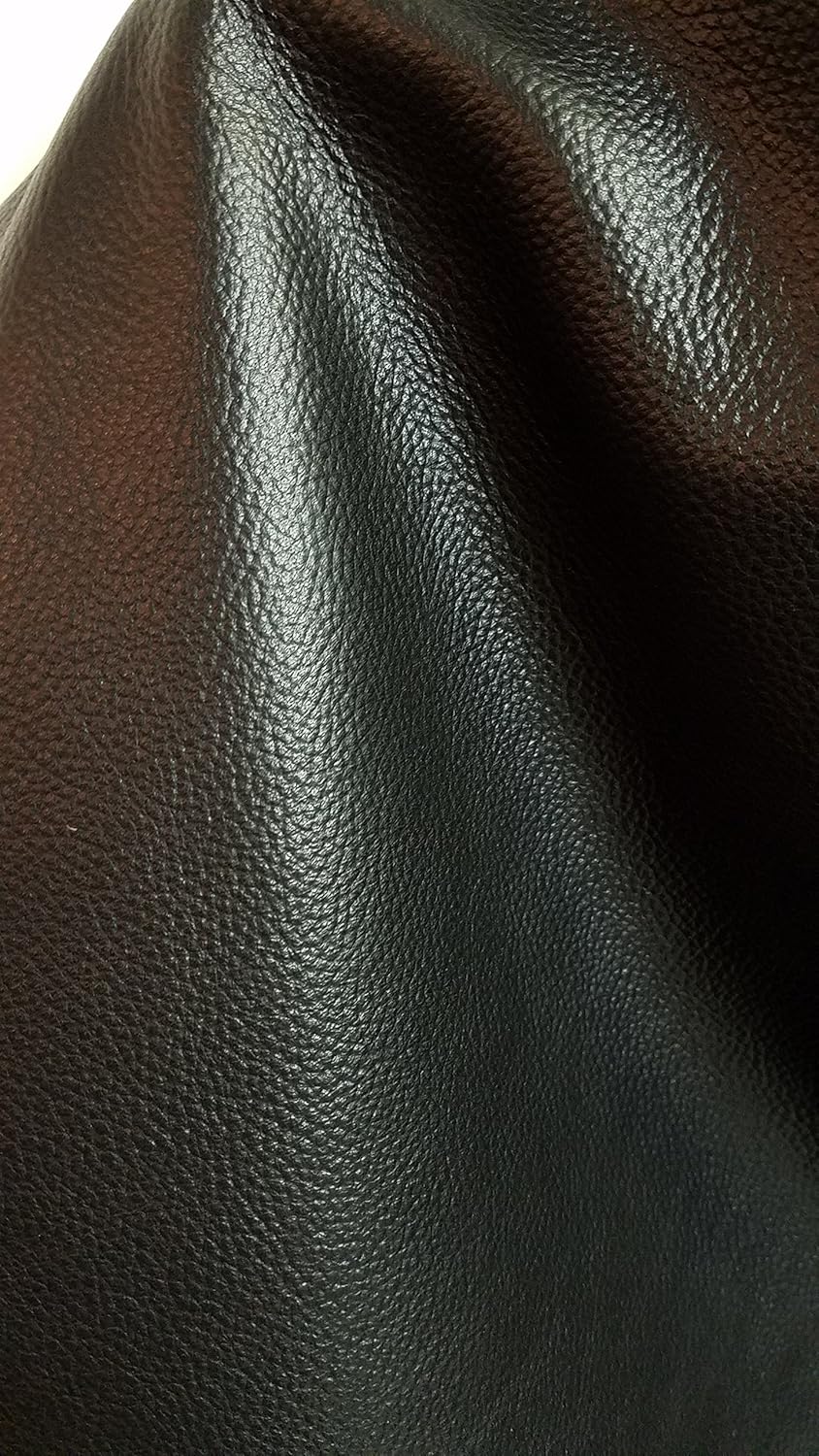 Black embossed tumblegrain soft cowhide leather, skin could have a small hole as the leather is a natural product.