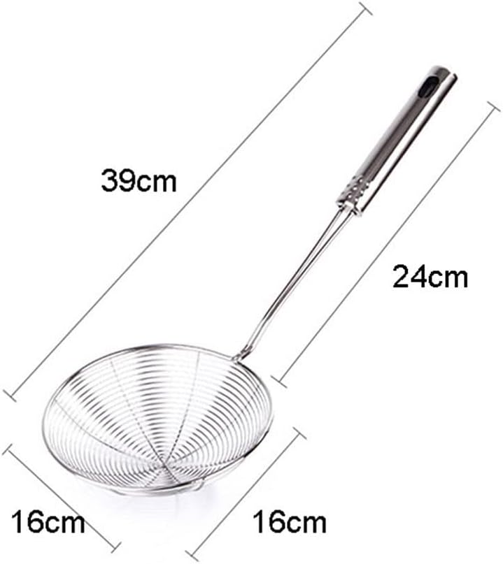 • Comfortable to use: As a traditional Asian appliance, it safely picks up food and expels hot oil and boiling liquid. Food is safely placed in a shallow basket to prevent splashing and confusion; used to drain noodles or pasta, hot vegetables, fried, etc.