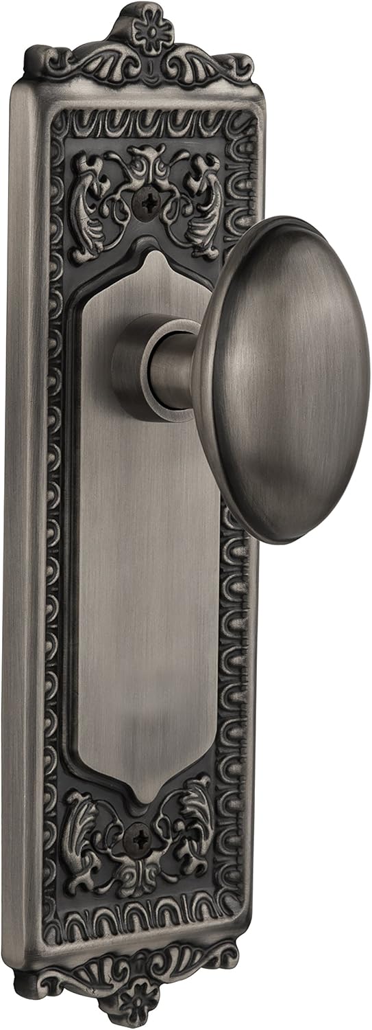 Product Description With its distinctive repeating border detail, as well as floral crown and foot, the Egg & Dart Plate in antique brass resonates grand style and is the ideal choice for larger doors. Add our Homestead Knob with its curvaceous oval shape for a look to enhance any home. All Nostalgic Warehouse knobs are mounted on a solid (not plated) forged brass base for durability and beauty. From the Manufacturer With its distinctive repeating border detail, as well as floral crown and foot, the Egg & Dart Plate in antique brass resonates grand style and is the ideal choice for larger doors. Add our Homestead Knob with its curvaceous oval shape for a look to enhance any home. All Nostalgic Warehouse knobs are mounted on a solid (not plated) forged brass base for durability and beauty.