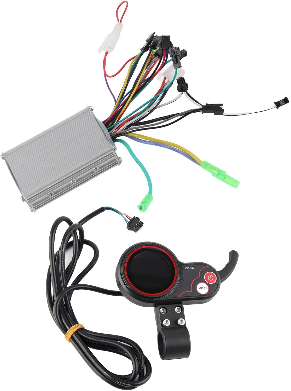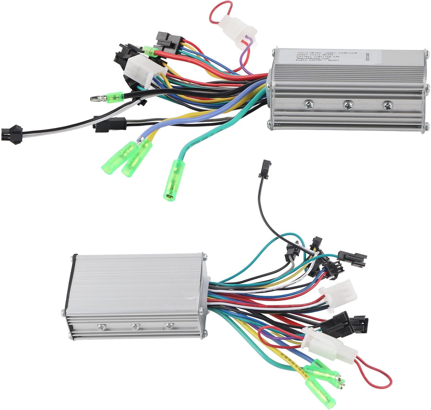 Features: Made of good materials with fine craftsmanship, which ensures good toughness and waterproof feature, which provides better protection for inner circuit and makes it more durable. It allows you to easily have a look at the basic state of electric bike about speed, gear, power, mode, lamp, etc. The display supports 3 levels of backlight, multiple settings such as auto or timer sleep mode, speed limit and more, very practical and easy to use. Every cable has different color, easy to install the panel display to electric bike. Perfect accessory for electric bike, scooter, etc. Specification: Condition: 100% Brand New Material: Aluminum + Plastic Color: Black Controller Power: 250W/350W (universal for electric bikes with or without Hall sensor) Controller Size: Approx. 8.8 x 5.2 x 3cm / 3.46 x 2.05 x 1.18inch Weight: Approx. 374g Options(Power Supply Voltage): 24V; 36V; 48V; 60VDefinition of LCD line color:Red---positive pole of power supply; Yellow---switch output; Blue---signal reception;Green---signal transmission; Black---negative pole of power supply ;White---positive pole headlights. Packing List: 1 x Controller 1 x Display with Shifter Note: 1. For Display: one cable plug is for lamp, the other for display2.The product can work without Hall sensor, but it will display the motor fault code E07 which cannot be eliminated.